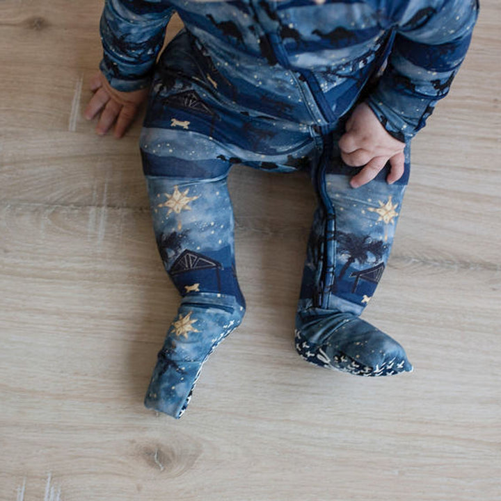 Celebrate the true meaning of Christmas with our “Star of Bethlehem” romper — a hand-painted nativity scene that wraps your little one in a message of peace, purpose, and heavenly softness.